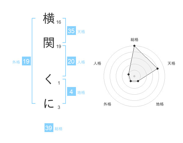 横関 くにさんの総格は39画の5点!