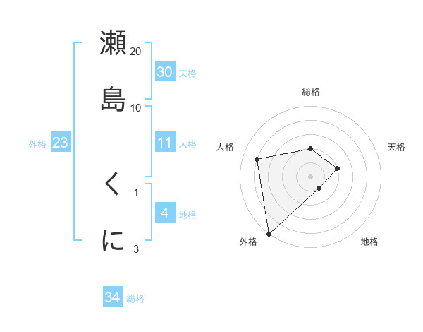 瀬島 くにさんの総格は34画の2点!