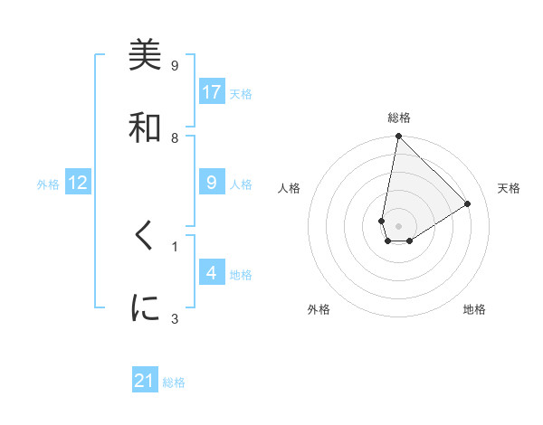 美和 くにさんの天格は17画の4点!