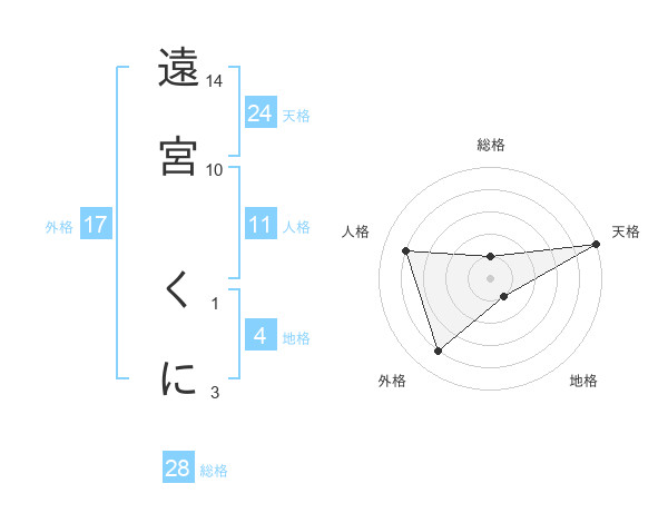 遠宮 くにさんの天格は24画の5点!