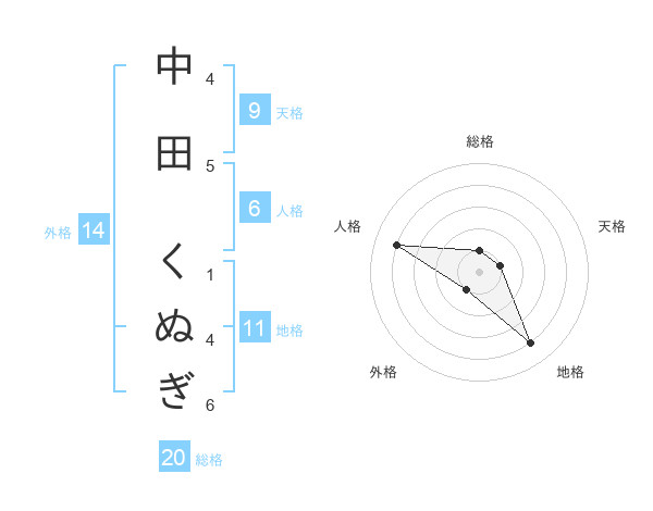 中田 くぬぎさんを姓名の画数から五運を鑑定