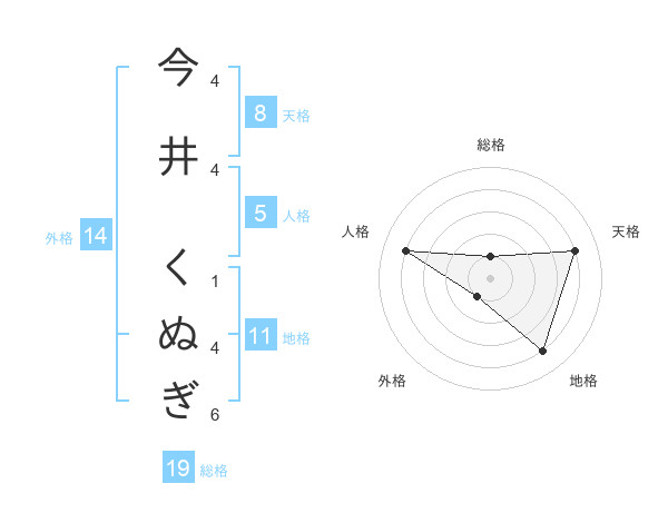 今井 くぬぎさんを姓名の画数から五運を鑑定