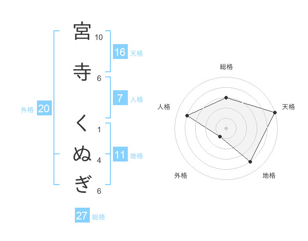 宮寺 くぬぎさんの総格は27画の3点!