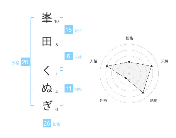 峯田 くぬぎさんを姓名の画数から五運を鑑定
