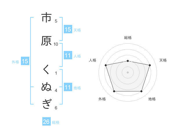 市原 くぬぎさんを姓名の画数から五運を鑑定
