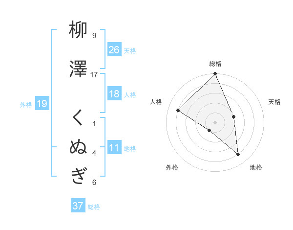 柳澤 くぬぎさんを姓名の画数から五運を鑑定