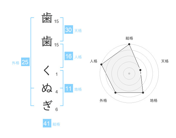 歯歯 くぬぎさんを姓名の画数から五運を鑑定