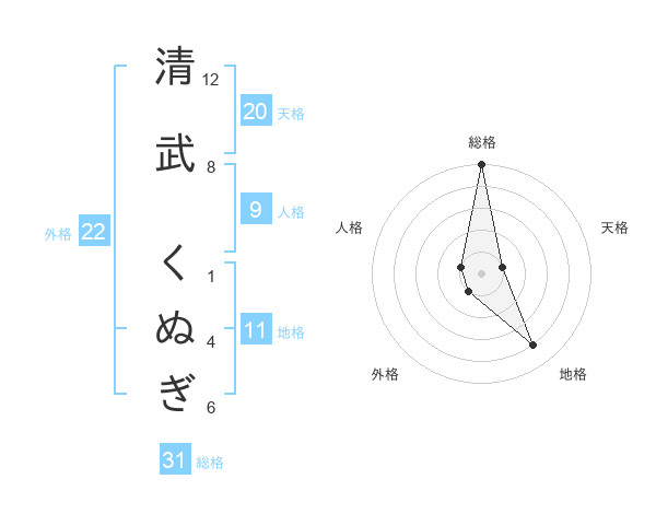 清武 くぬぎさんを姓名の画数から五運を鑑定