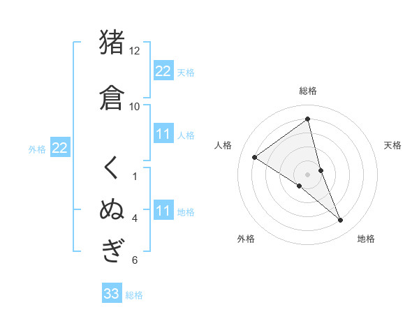 猪倉 くぬぎさんを姓名の画数から五運を鑑定