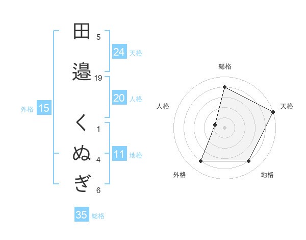 田邉 くぬぎさんの天格は24画の5点!