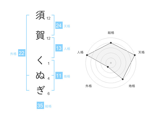 須賀 くぬぎさんを姓名の画数から五運を鑑定