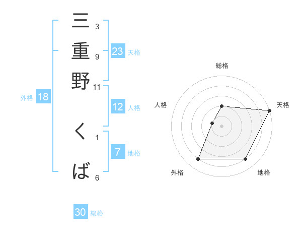 三重野 くばさんの天格は23画の5点!