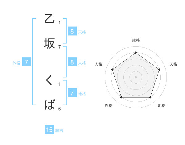 乙坂 くばさんを姓名の画数から五運を鑑定