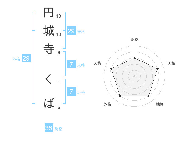 円城寺 くばさんの天格は29画の4点!