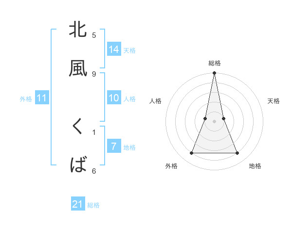 北風 くばさんの総格は21画の5点!