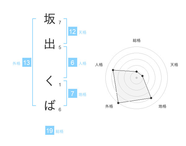坂出 くばさんの外格は13画の5点!