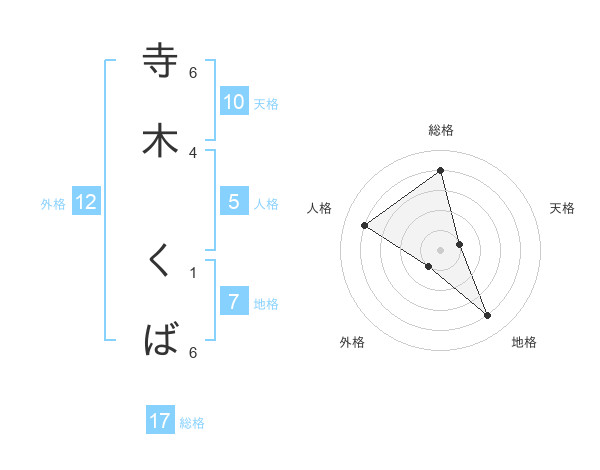 寺木 くばさんの総格は17画の4点!