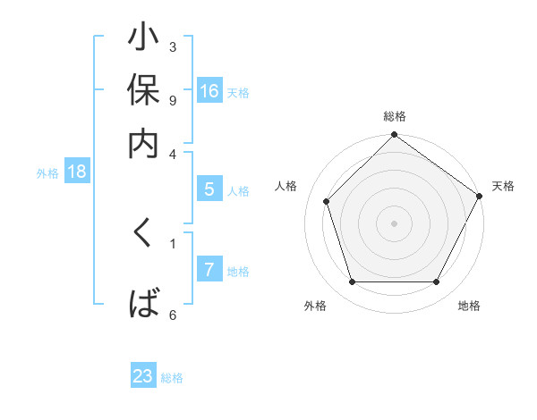 小保内 くばさんの総格は23画の5点!