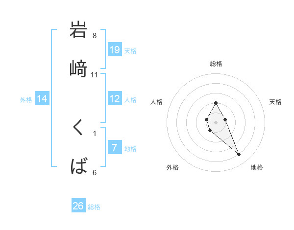 岩﨑 くばさんの総格は26画の2点!