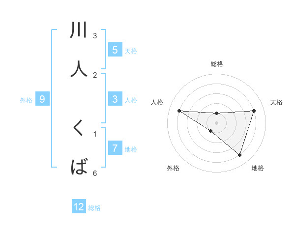 川人 くばさんの天格は5画の4点!