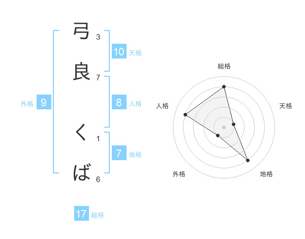 弓良 くばさんの総格は17画の4点!