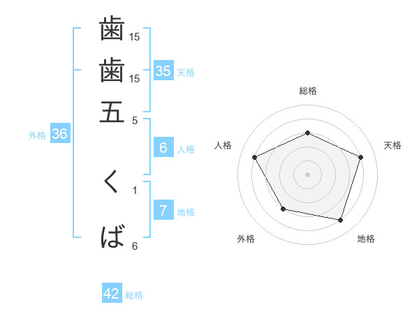 歯歯五 くばさんの総格は42画の3点!