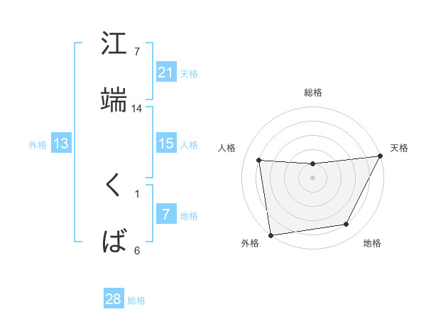 江端 くばさんの天格は21画の5点!