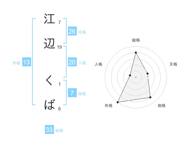 江辺 くばさんの外格は13画の5点!