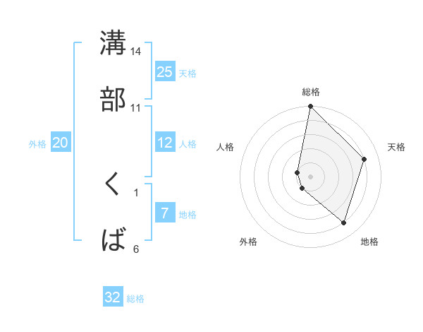 溝部 くばさんの総格は32画の5点!
