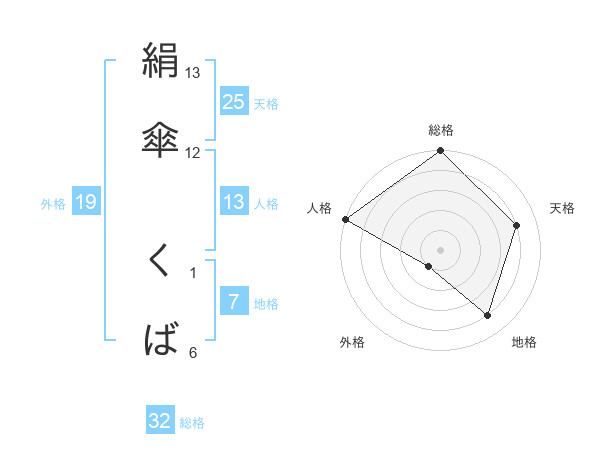 絹傘 くばさんを姓名の画数から五運を鑑定