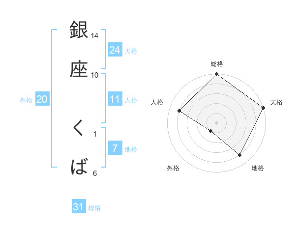 銀座 くばさんの総格は31画の5点!