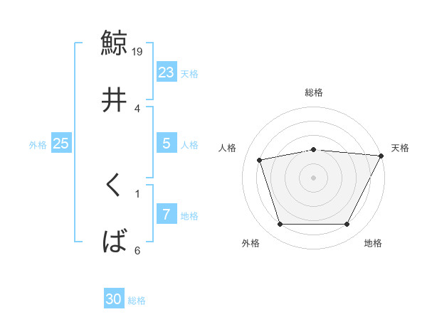 鯨井 くばさんの天格は23画の5点!