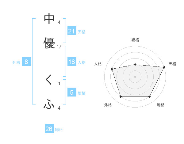 中優 くふさんの地格は5画の4点!