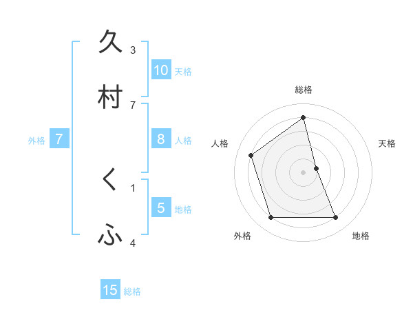 久村 くふさんの地格は5画の4点!