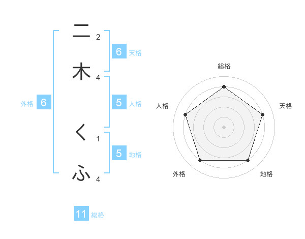 二木 くふさんの総格は11画の4点!