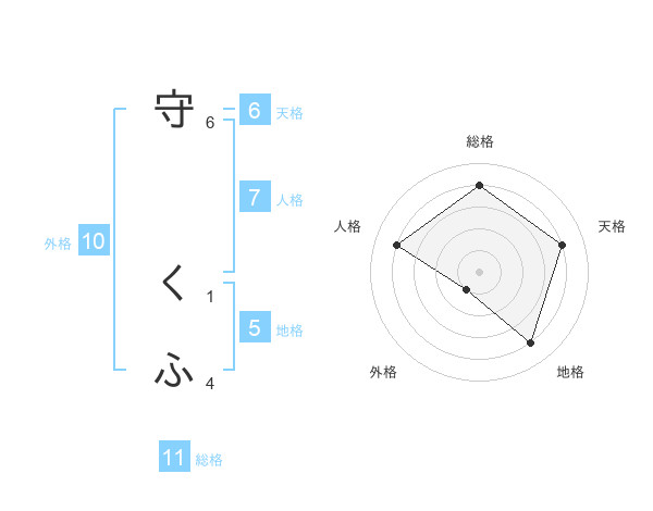守 くふさんの総格は11画の4点!