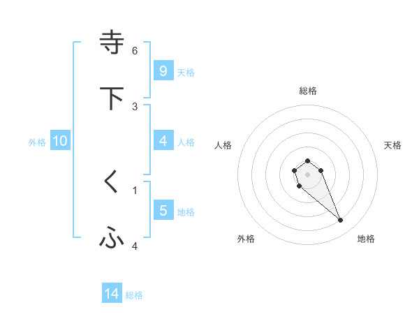 寺下 くふさんの地格は5画の4点!