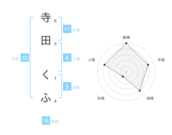 寺田 くふさんの総格は16画の5点!