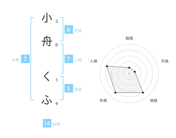 小舟 くふさんの総格は14画の1点!