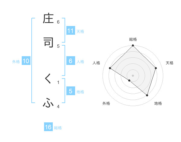 庄司 くふさんの総格は16画の5点!