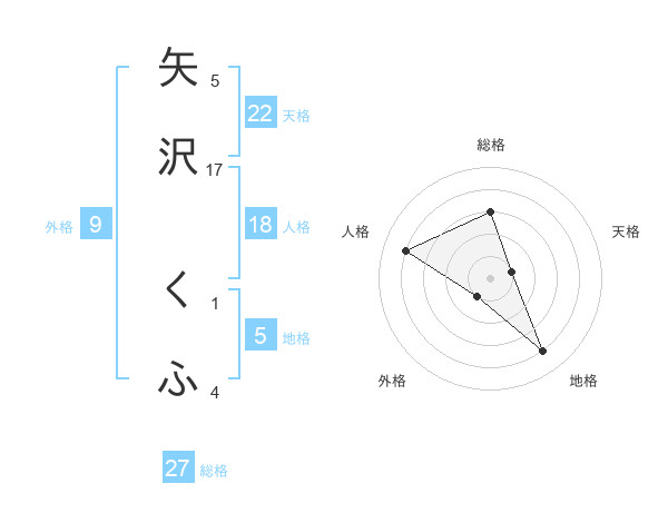 矢沢 くふさんの総格は27画の3点!