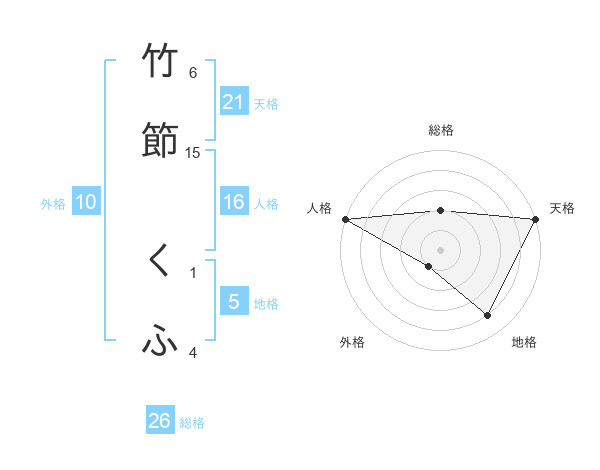 竹節 くふさんの総格は26画の2点!