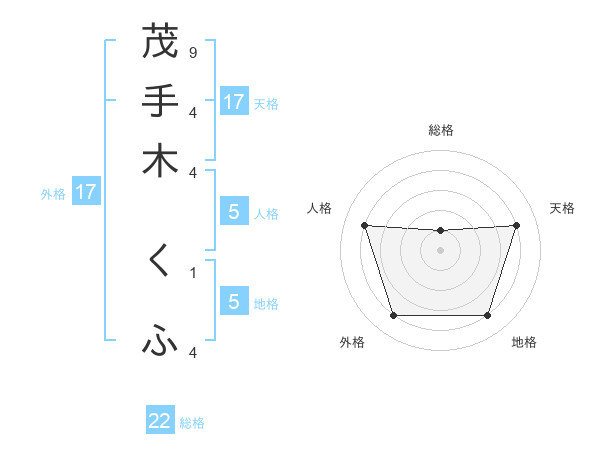 茂手木 くふさんの地格は5画の4点!