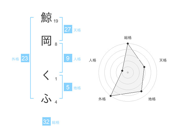 鯨岡 くふさんの外格は23画の5点!