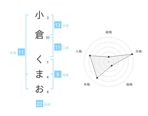 小倉 くまおさんの天格は13画の5点!