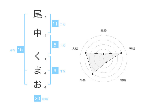 尾中 くまおさんを姓名の画数から五運を鑑定