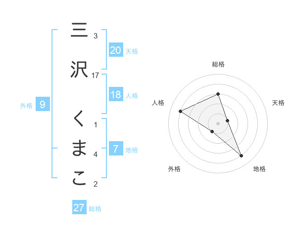 三沢 くまこさんを姓名の画数から五運を鑑定