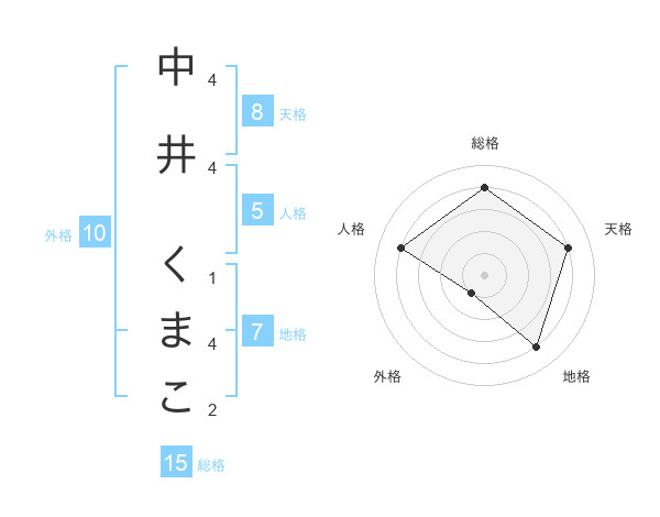 中井 くまこさんの天格は8画の4点!