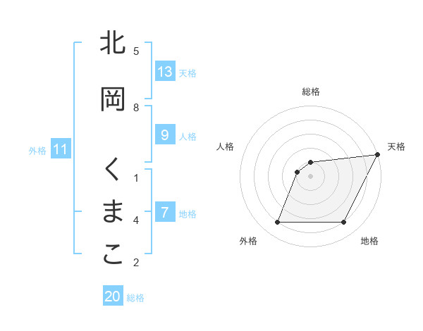 北岡 くまこさんを姓名の画数から五運を鑑定