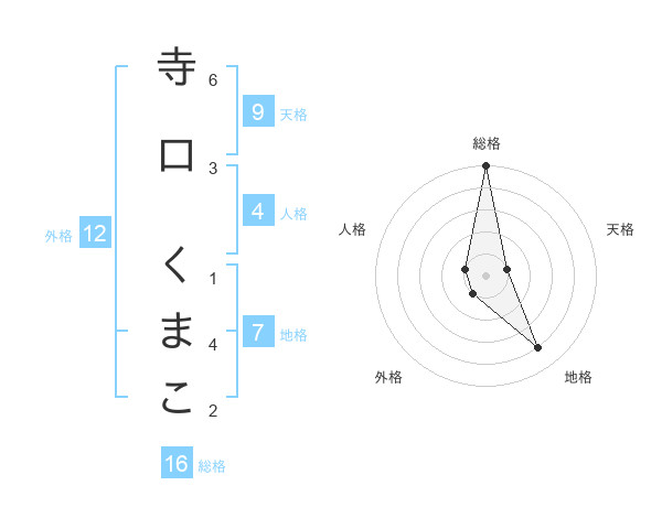 寺口 くまこさんを姓名の画数から五運を鑑定